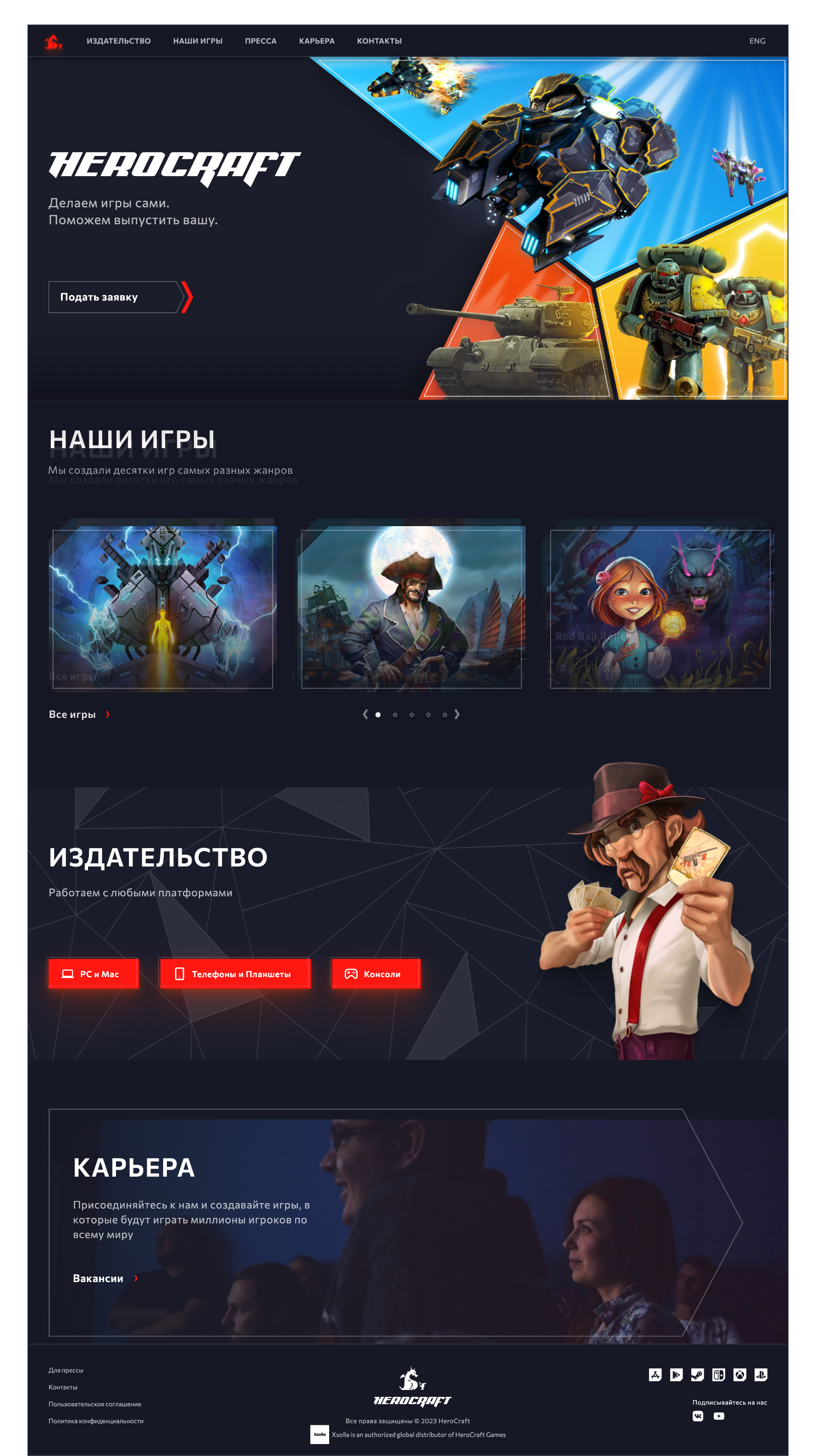 Переосмысление и редизайн сайта компании-разработчика и издателя компьютерных игр Herocraft, добавление мобильной версии для удобства клиентов.